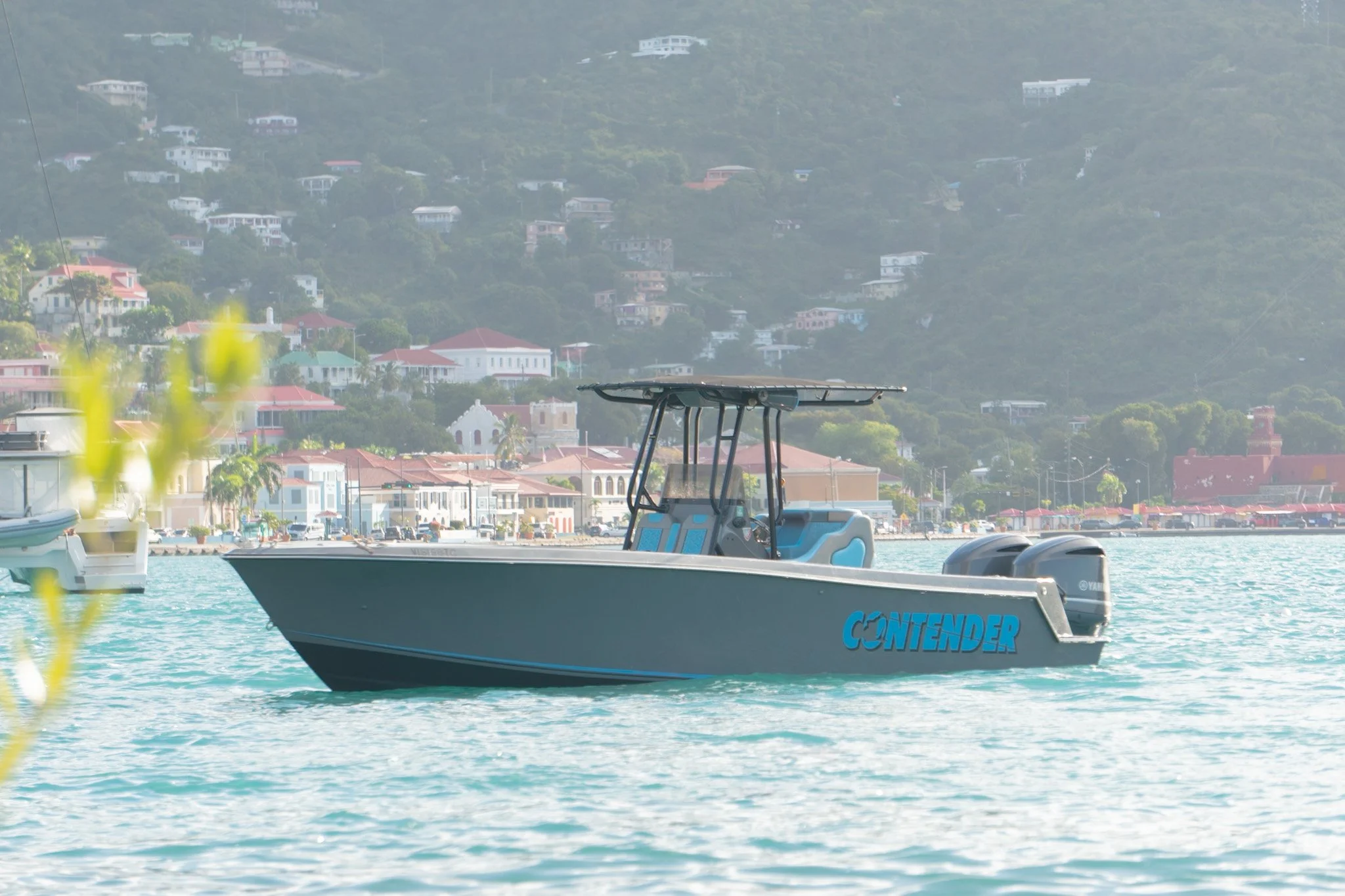 Our private charters are operated on a 30ft Contender, a sleek, high-performance boat designed for comfort and speed. With ample space for up to 6 guests, it’s perfect for a smooth and exciting ride across the waters. Equipped with two Yamaha 250 4 stroke engines, state of the art speakers, comfortable seating, and plenty of storage, this boat ensures a safe and enjoyable experience for your island adventure.